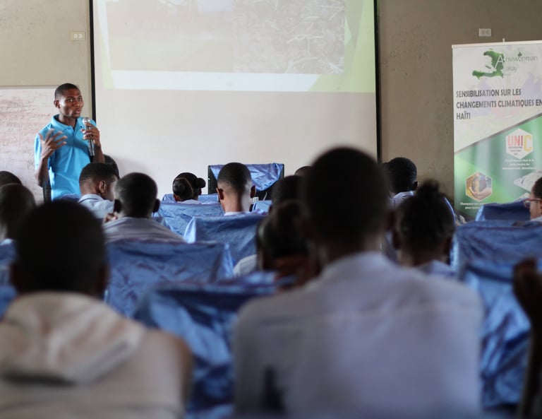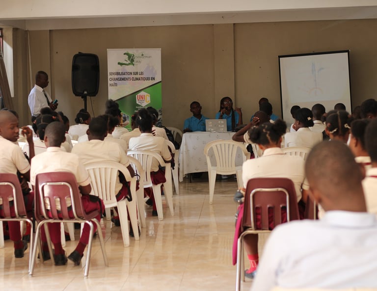 Dans la commune de Limbé (Nord d’Haïti), une formation a été réalisée à l’intention d’environ 250 écoliers sur les changements climatiques et les solutions d’adaptation en agriculture, notamment la mise en place des cultures potagères en milieu urbain
